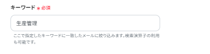 Gmailで特定のキーワードを含むメールを受信したことを、この自動化のトリガー(起点)にするための設定を行います。