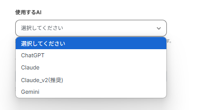 使用するAIを指定しましょう。今回はChatGPTを使用します。