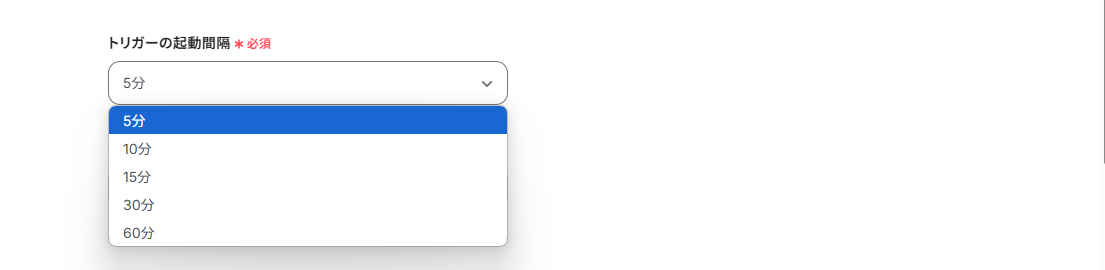 トリガーの起動タイミングは、5分、10分、15分、30分、60分のいずれかで設定できます。