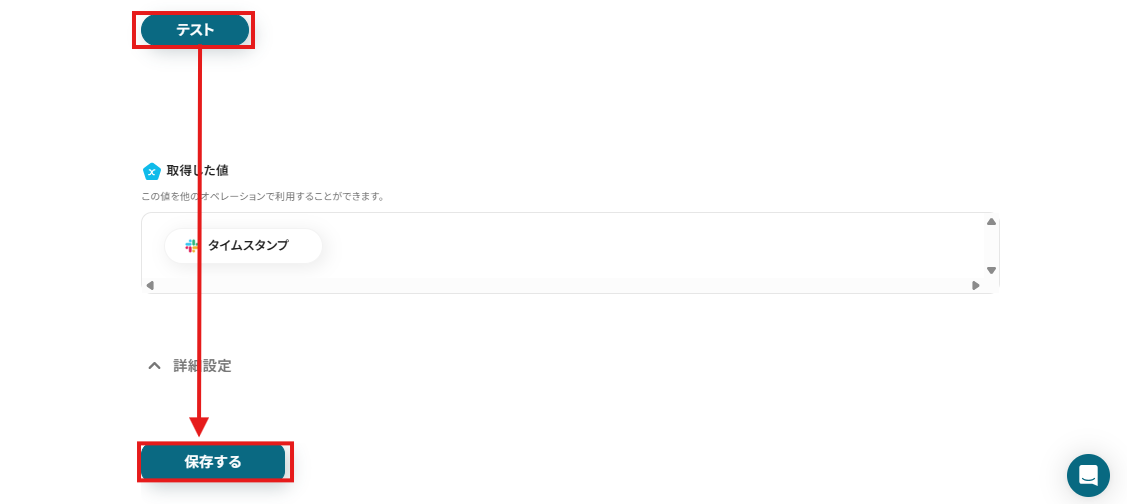 設定が完了したらテストを実行後、設定を保存してください。