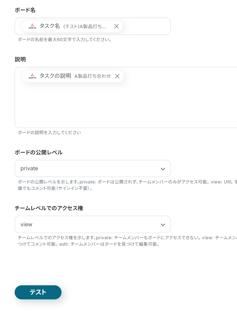 ボード名と説明の欄は、前項で取得した値を使用することができます。