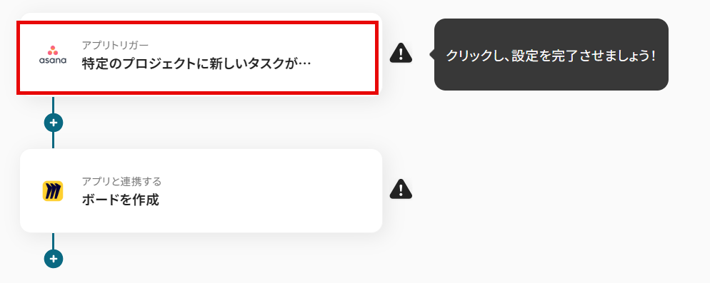 このワークフローを活用することで、Miroで新規ボードが作成されたタイミングをトリガーに、Asanaへ自動でタスクを追加できます。