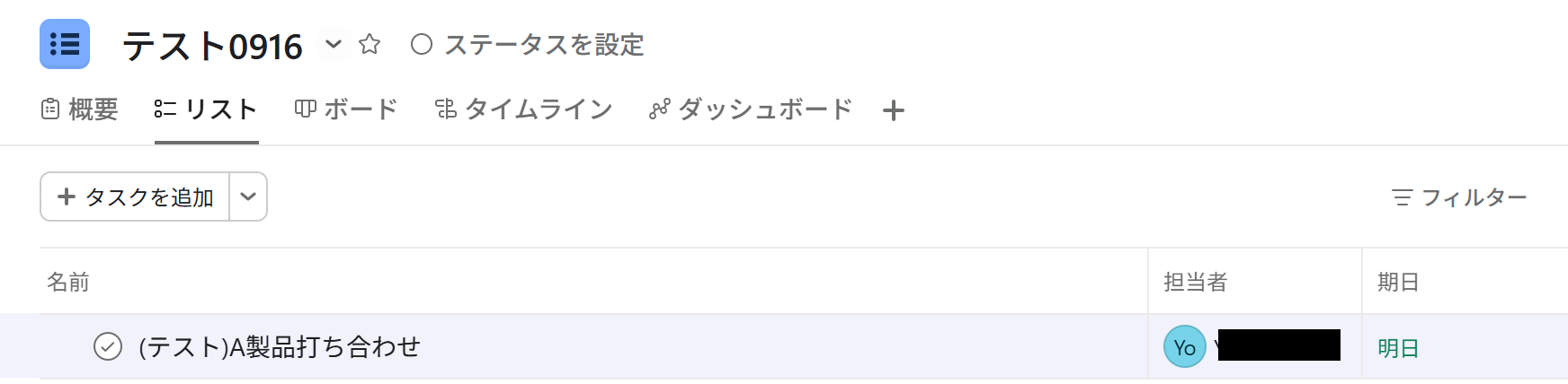ここでAsanaにテスト用の新しいタスクを追加します。