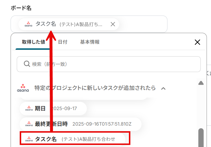 Miroで作成されたボードの中から、特定の条件(例:ボード名に「要対応」が含まれるなど)に合致するものだけを抽出し、Asanaにタスクとして追加します。