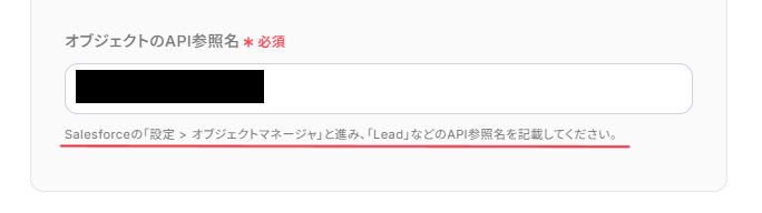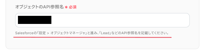 「オブジェクトのAPI参照名」も、注釈を確認し入力しましょう。