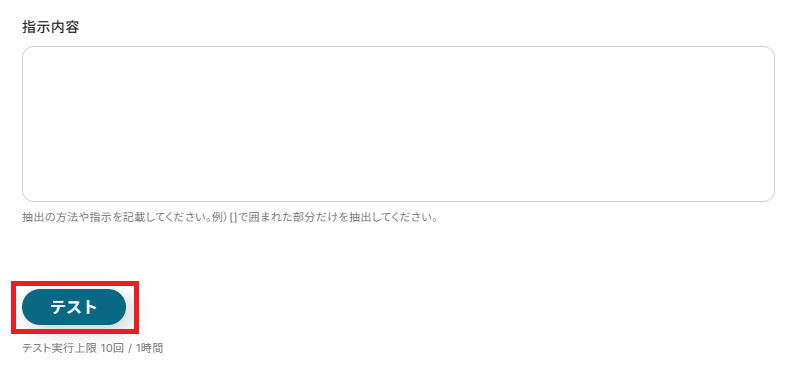 「指示内容」は、AIに対して抽出する際の条件や指示を自由に記入できます。
