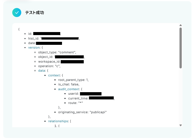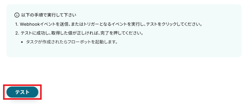 作成が完了したら、Yoomに戻り「テスト」を押してください。