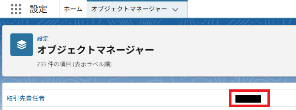 オブジェクトマネージャーから取得可能で、今回は【取引先責任者】のAPI参照名を設定します。