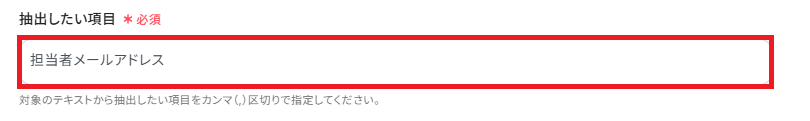 「抽出したい項目」は、テキストの中からどの項目を抽出するかを入力します。