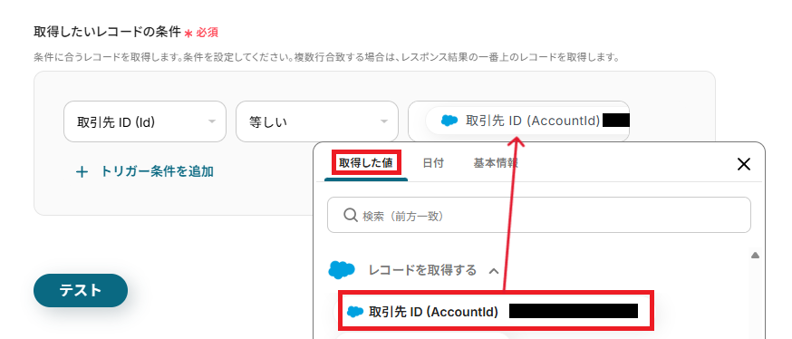 「取得したいレコードの条件」は、複数存在するレコードの中から取得対象となるレコードを指定します。
