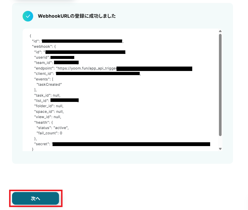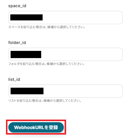設定が完了したら「WebhookURLを登録」をクリックしましょう。