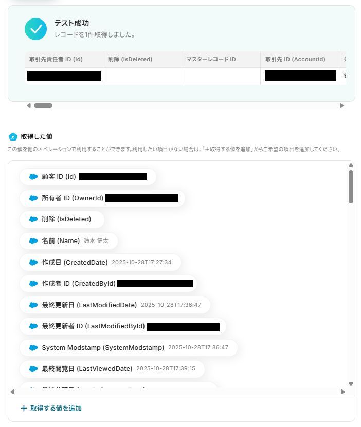 ステップ6:Salesforceからレコードを取得する(取引先責任者)