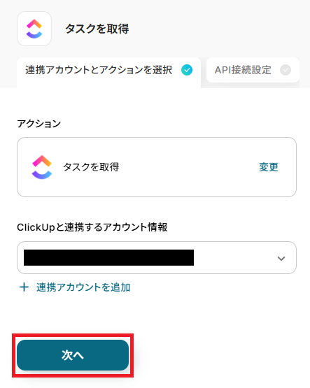 次に、ClickUpのタスク情報を取得する設定を行います。