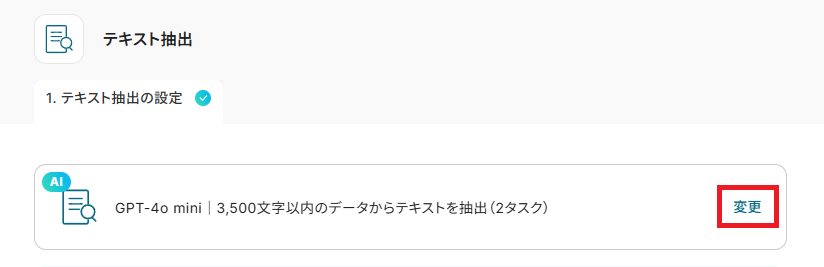 変換タイプは 「GPT-4o mini|3,500文字以内のデータからテキストを抽出(2タスク)」 が、デフォルトで設定されています。
