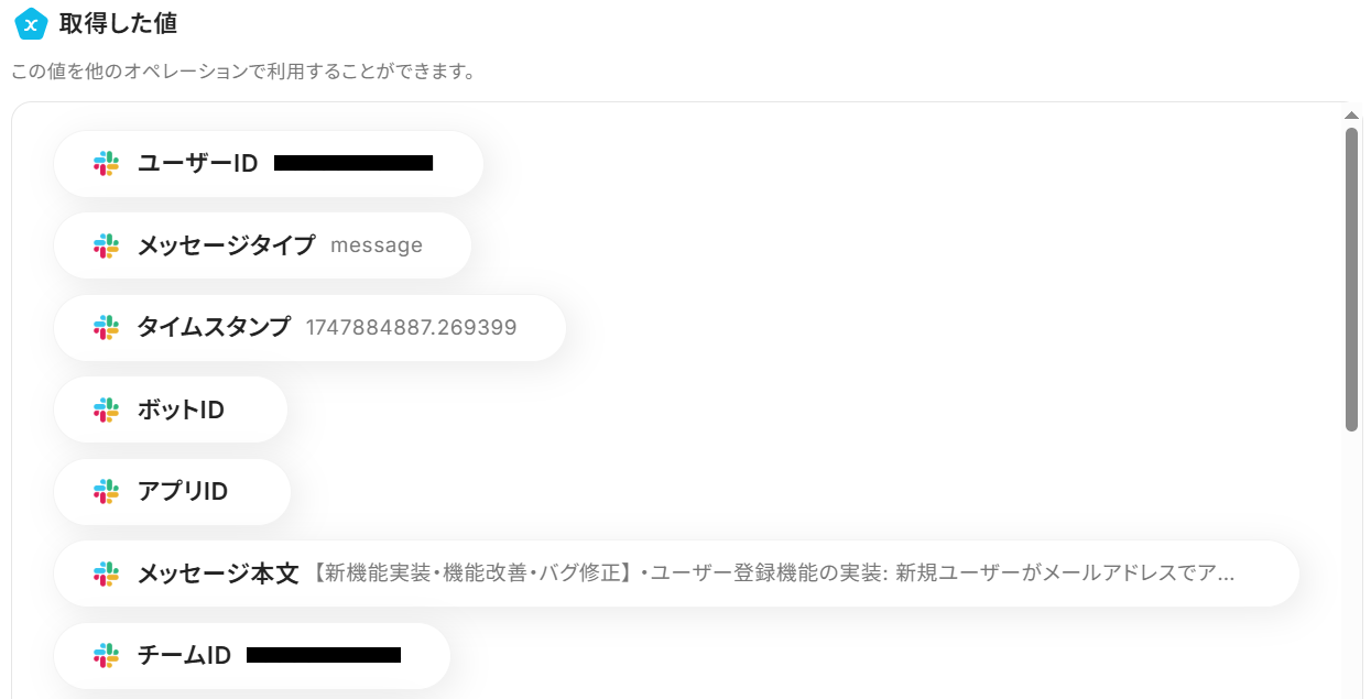 ここで取得したアウトプットの値は次のステップで活用できます。