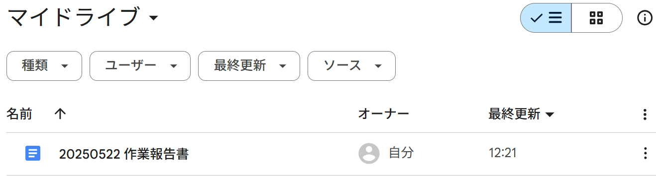 Googleドキュメントが新規作成され、Google Driveのマイドライブに格納されました!