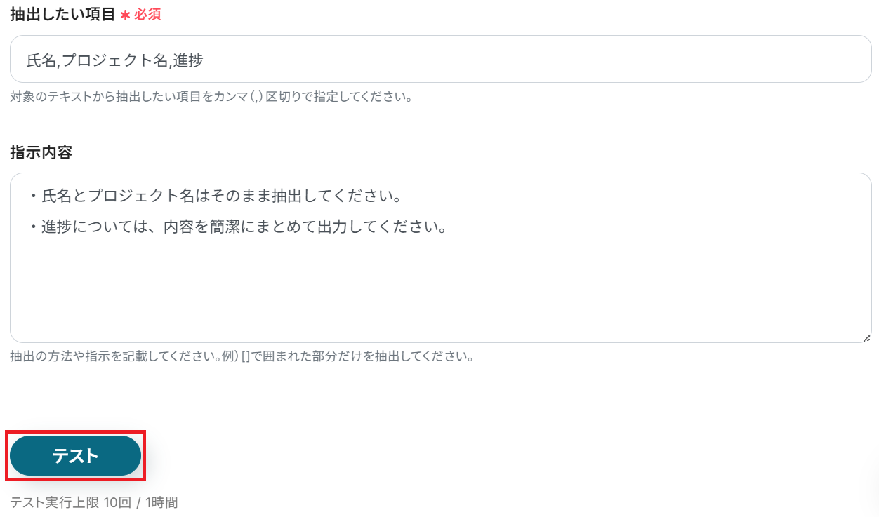 最後に任意で指示内容を入力してテストしてください。