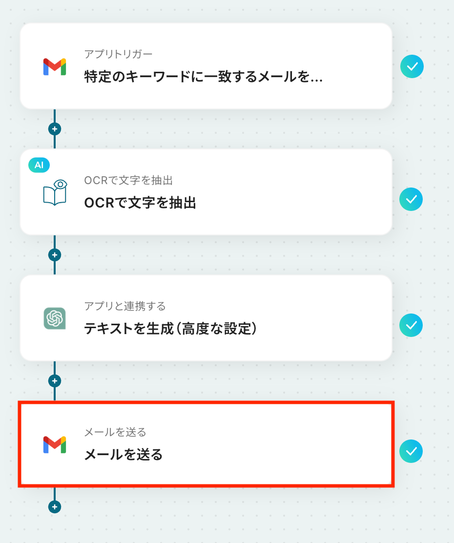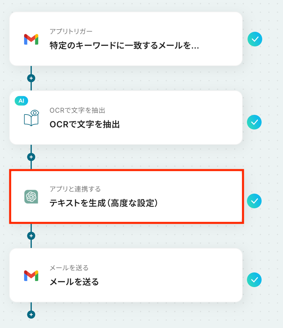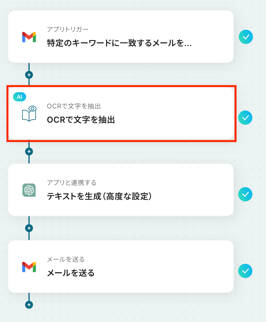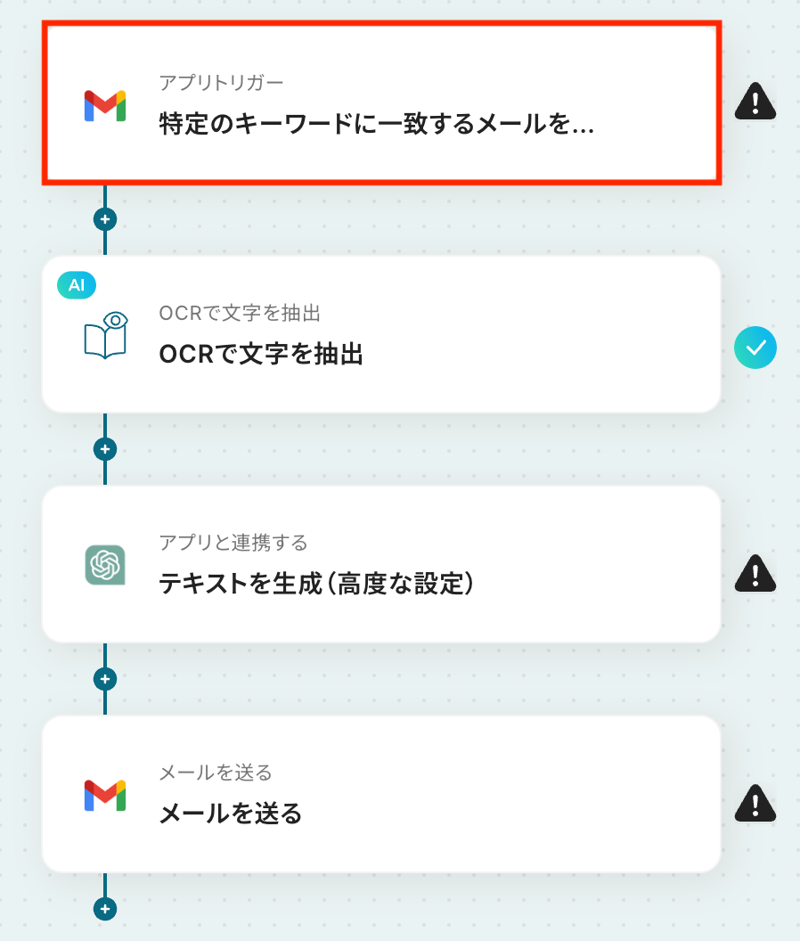 それではここから代表的な例として、GmailでPDFファイルを受信したら、OCRでテキストを読み取り、ChatGPTで重要箇所を抽出して共有するフローを解説していきます。
