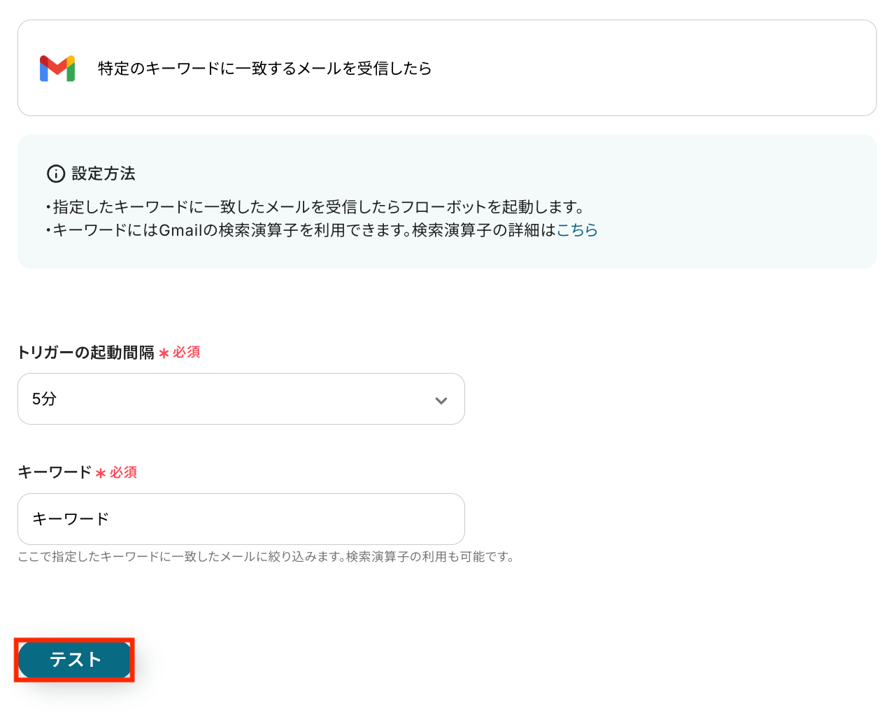 ステップ3:Gmailでキーワード受信のトリガーを作る