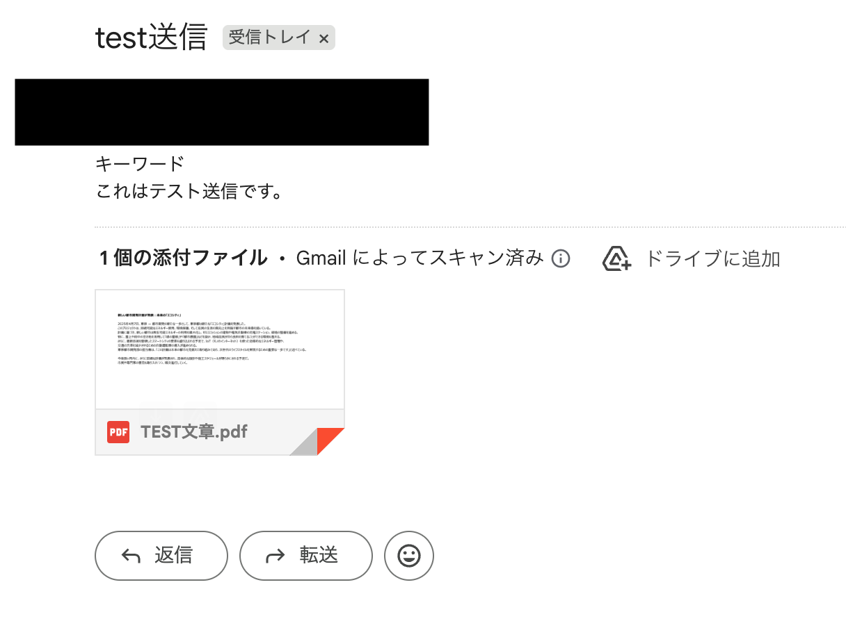 後続のフローで、添付したPDFの文字を読み取るので、文字が書かれたPDFファイルを添付してください。