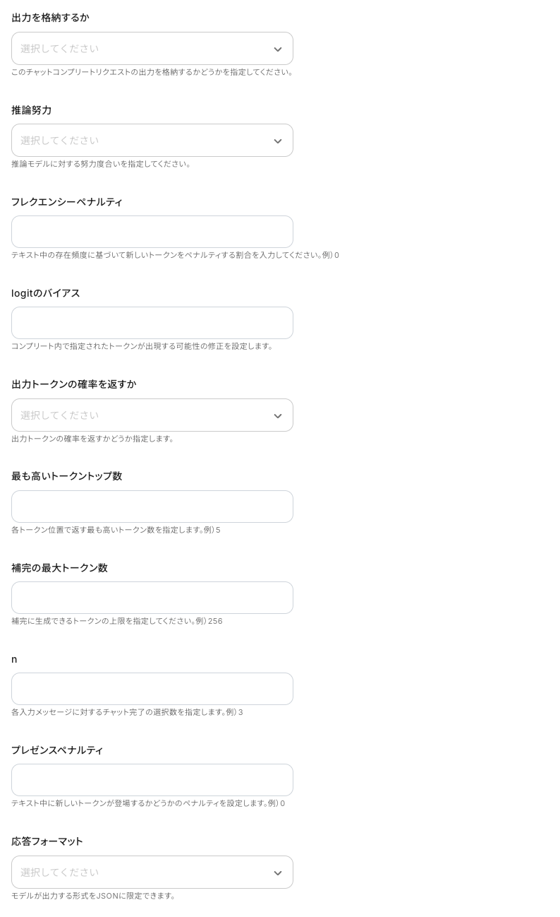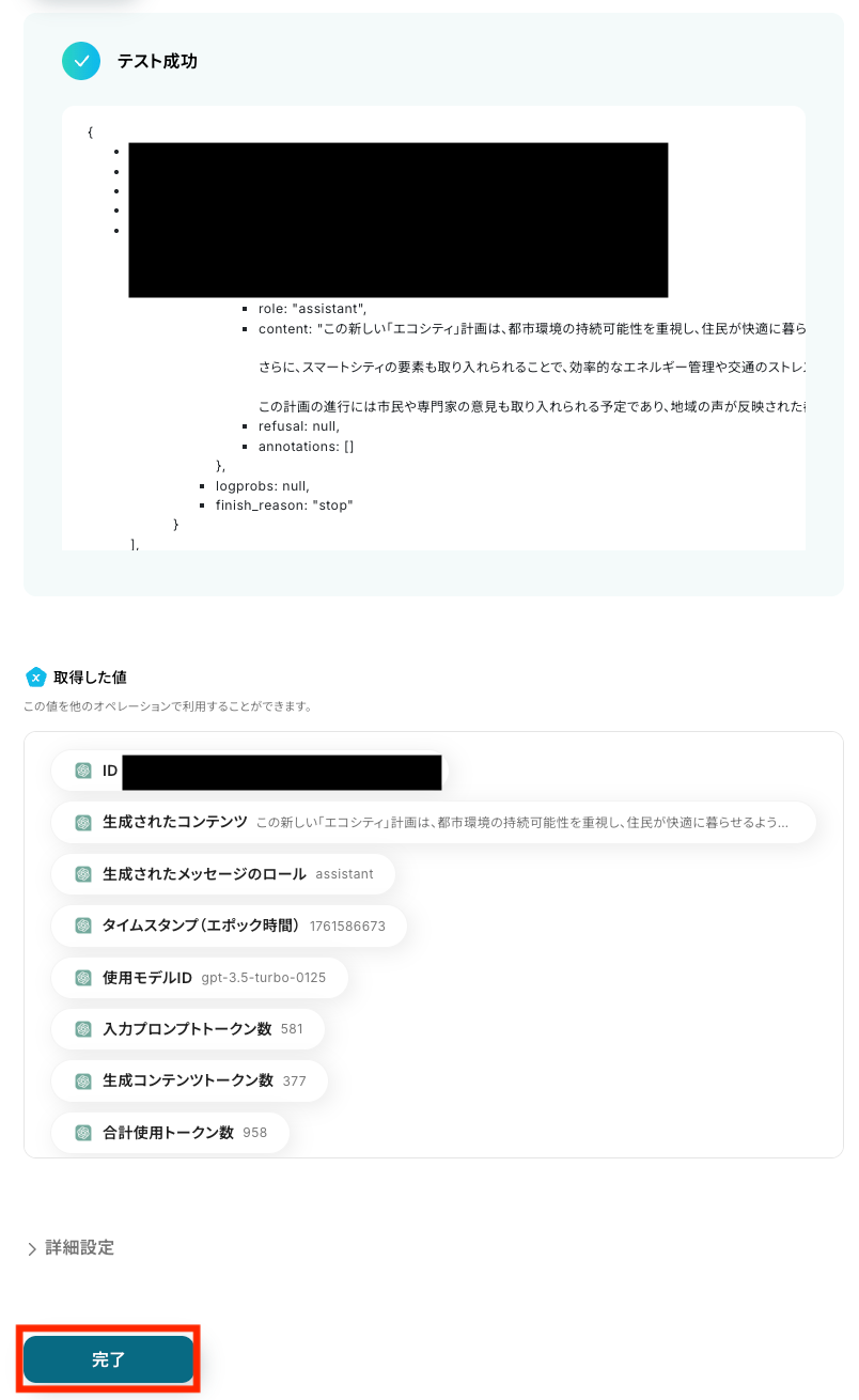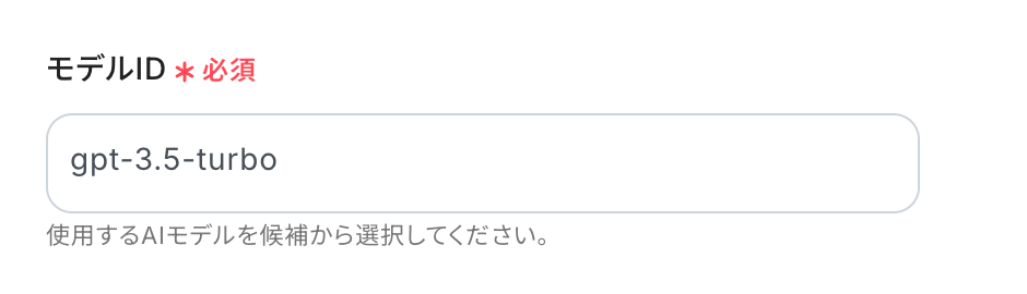今回はモデルIDに「gpt-3.5-turbo」を入力しました。