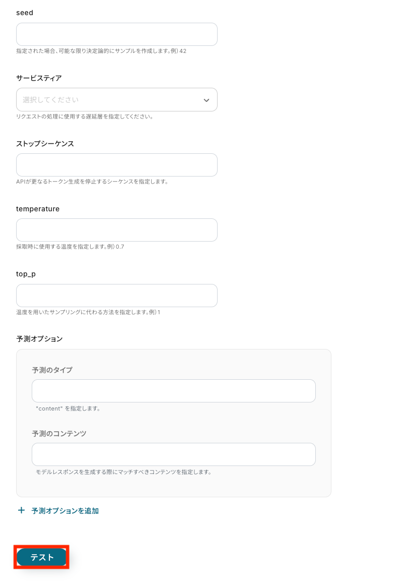 入力が完了したら、「テスト」を押します。