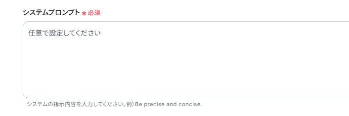・システムプロンプト:システムに指示したい内容を任意で入力してください。