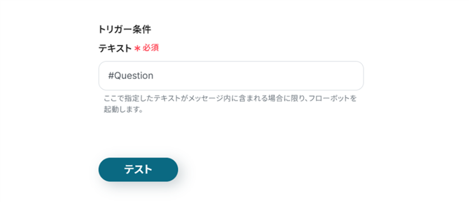 トリガー条件にフローボットを起動する文言を直接入力します。 #Questionをトリガーにしてみました!