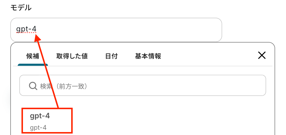 モデル :候補から選択