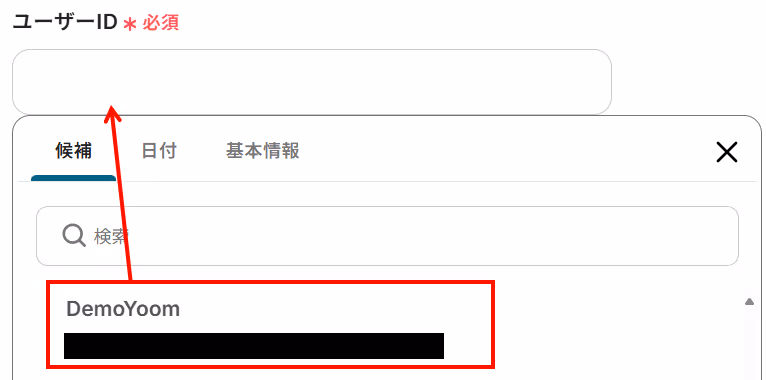 候補は、マイアプリ連携したアカウントに紐づいて表示されます。