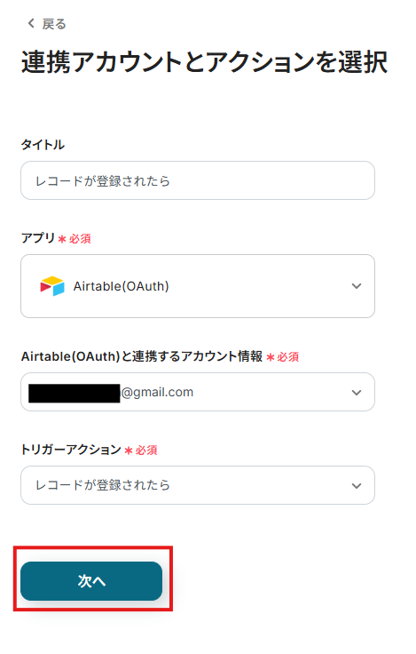 今回はAirtableへのレコード追加をトリガーとして設定するためです。