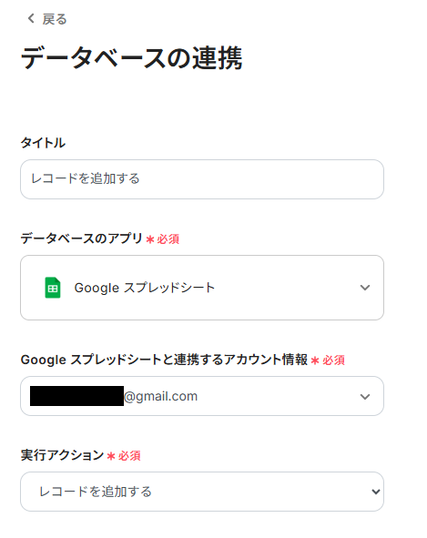 ステップ4:Google スプレッドシートのアクション設定
