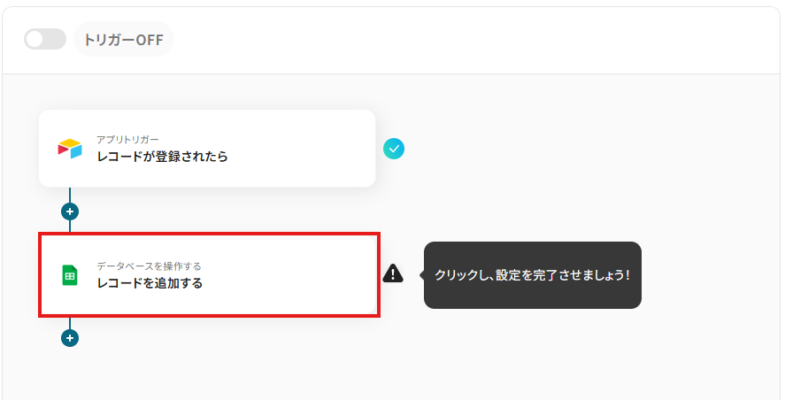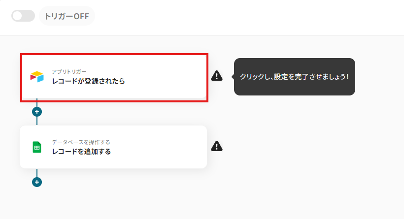 「トリガーアクション」は「レコードが登録されたら」のままで大丈夫です。