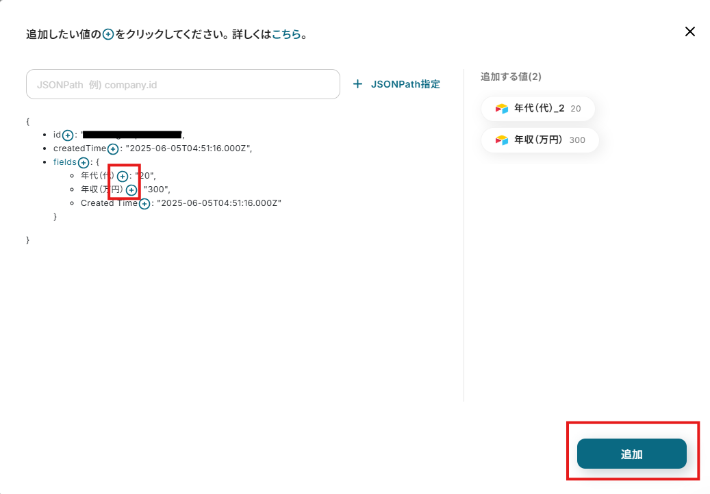 ⛏ JSON PATHによる「取得した値」の追加 | Yoomヘルプセンター