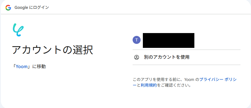 ※表示されたアカウント以外を連携したい場合は「別のアカウントを使用」をクリックし、連携したいアカウントでログインしてください。