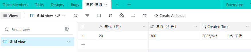 入力が完了したら、AirtableのBaseにレコードを追加します。