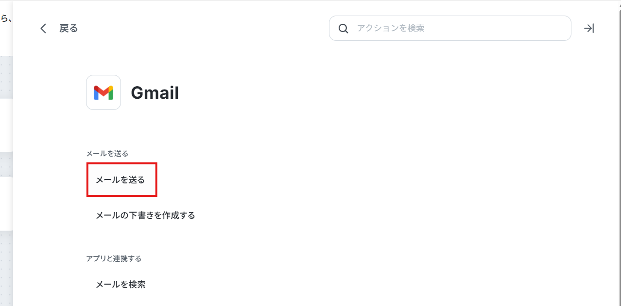 3. 「メールを送る」アクションを選択します。