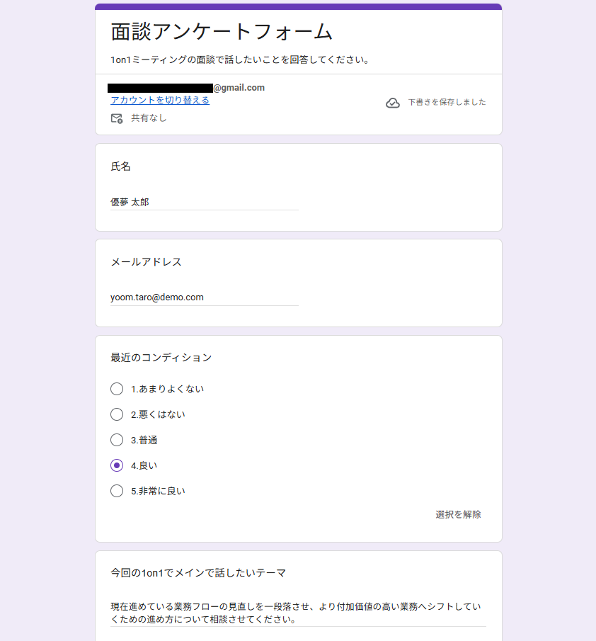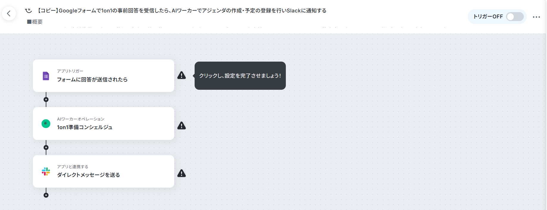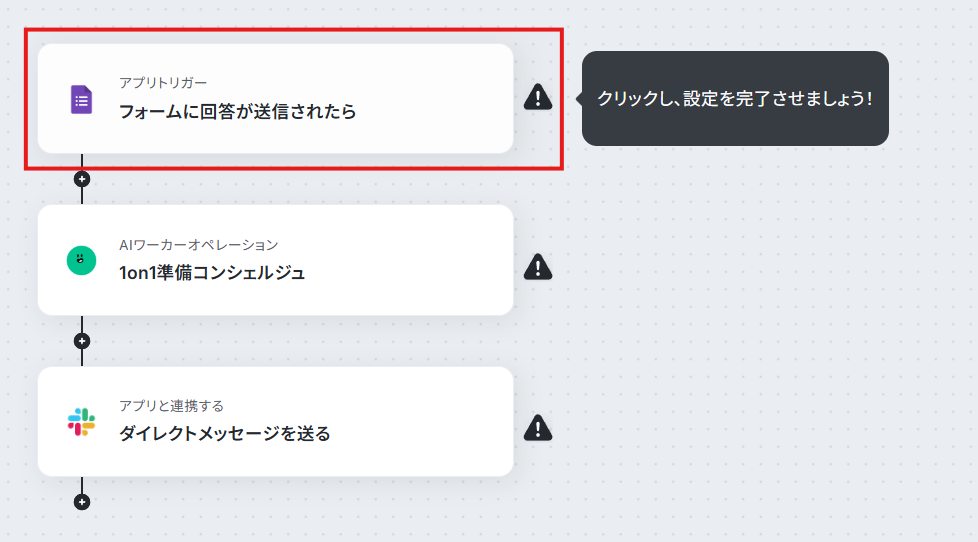 今回は、Googleフォームで1on1の面談アンケートが送信されたら起動するようにトリガーを設定します。