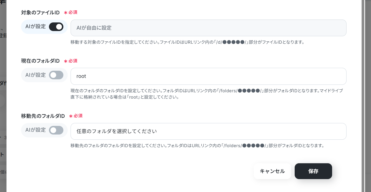 ※ この時、アクション設定の移動先フォルダは「AIが設定」にしておきます。