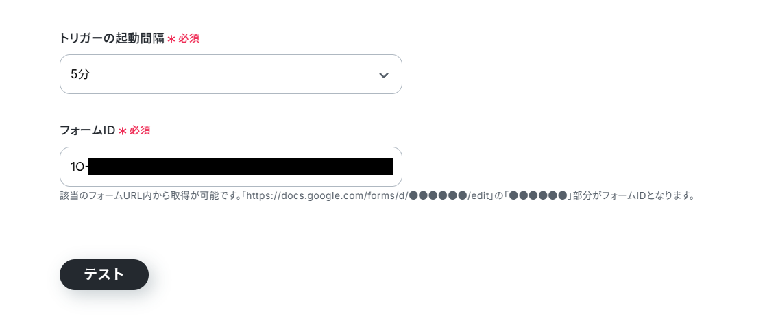6. 「フォームID」に事前準備で用意したフォームのIDを設定。