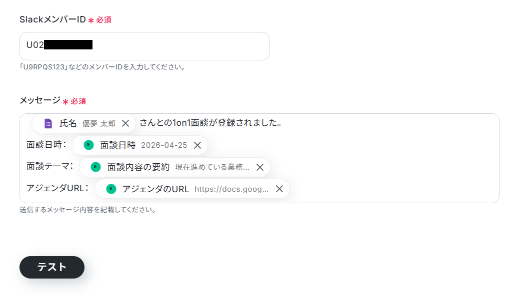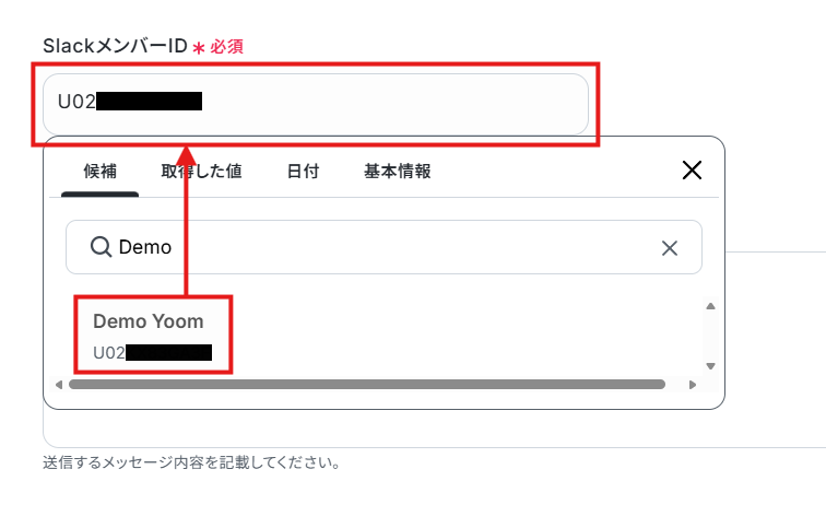 5.「SlackメンバーID」にメッセージを投稿するメンバーのIDを設定。