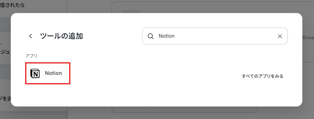 2. 「ツールを追加」をクリックしてNotionを選択し、連携アカウントを追加します。