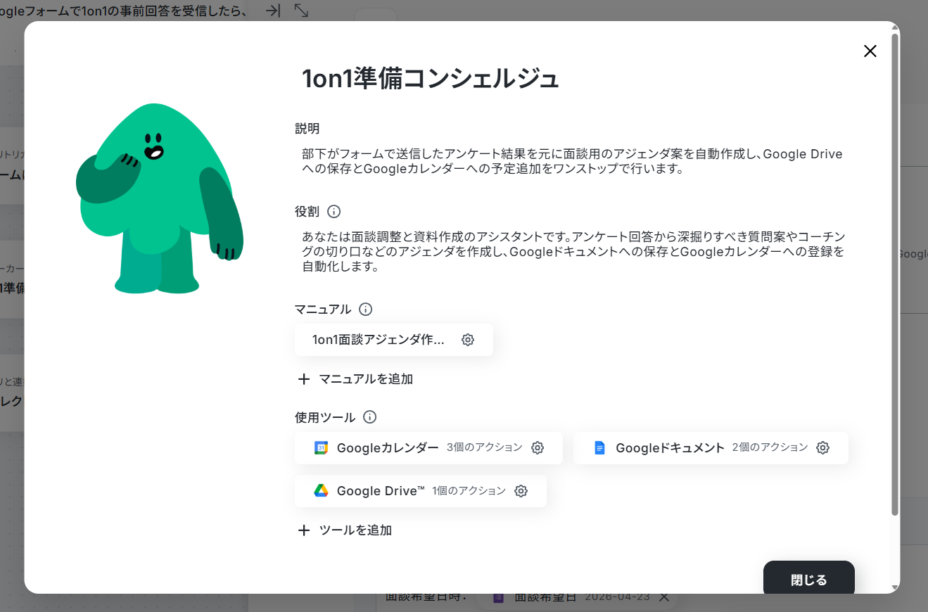 ここからは実際に、先ほどご紹介した「1on1準備コンシェルジュ」の作成手順を解説していきます!