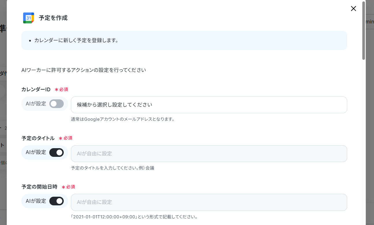 Googleカレンダーのアクション設定