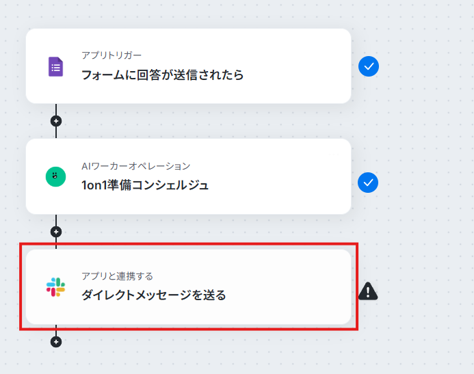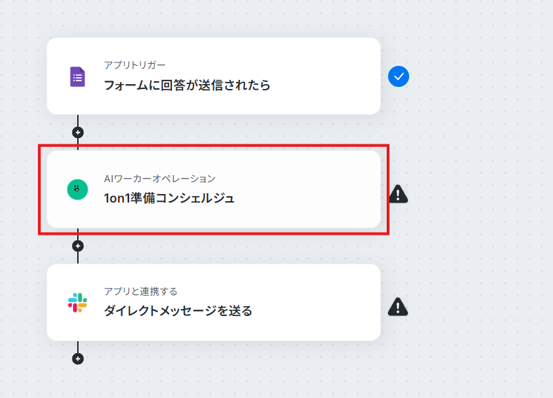 AIワーカー単体でも様々な業務を効率化できますが、フローボットに組み込むことで「アンケート結果から1on1の準備をしてSlackに通知する」といった業務のまるごと自動化を実現できます。