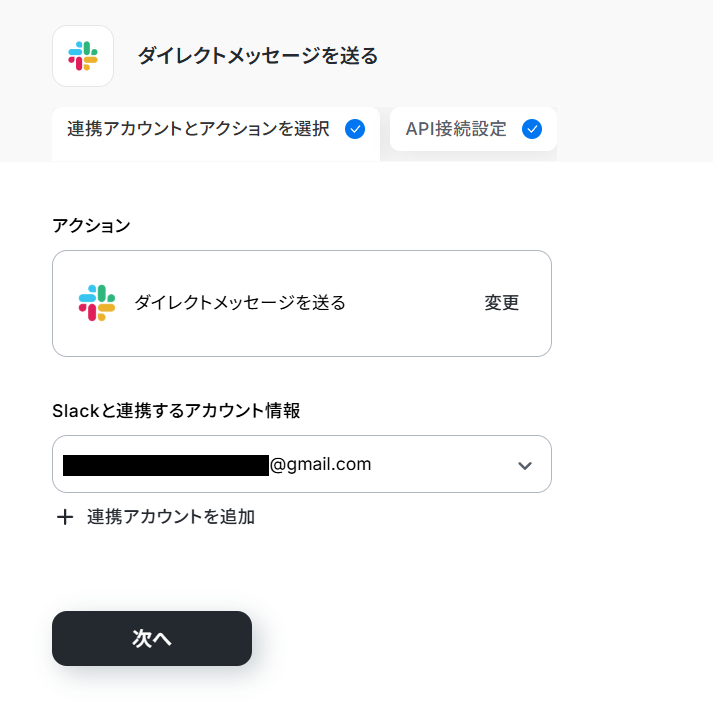 3. 「連携アカウントを追加」をクリックして、Slackとのアプリ連携を行います。