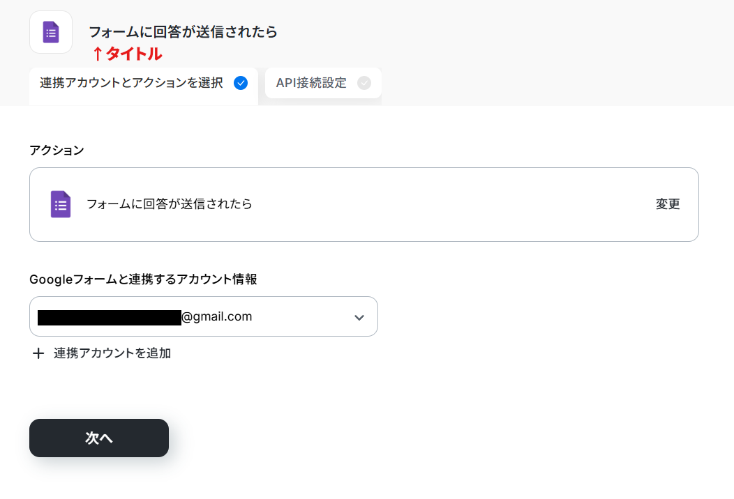 2. タイトルは分かりやすい名前(面談アンケートが送信されたら、など)に変更可能です。