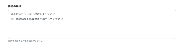 要約の条件には、要約する際のAIへの指示を出すことができます。