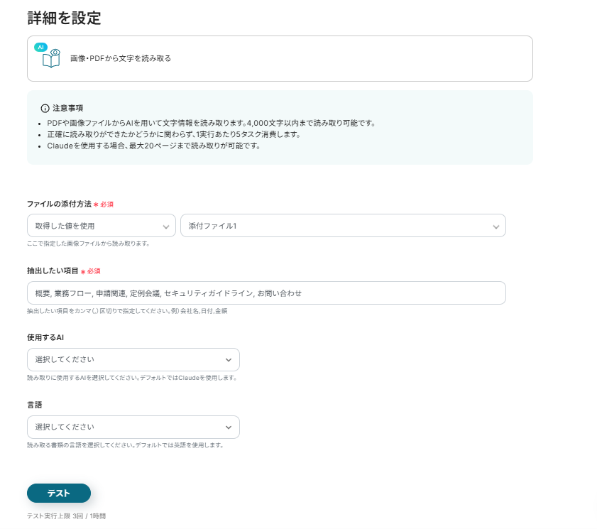 ステップ4:添付ファイルから文字を読み取る