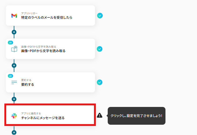 - Gmailのトリガー設定およびOCR・要約・Slackのアクション設定